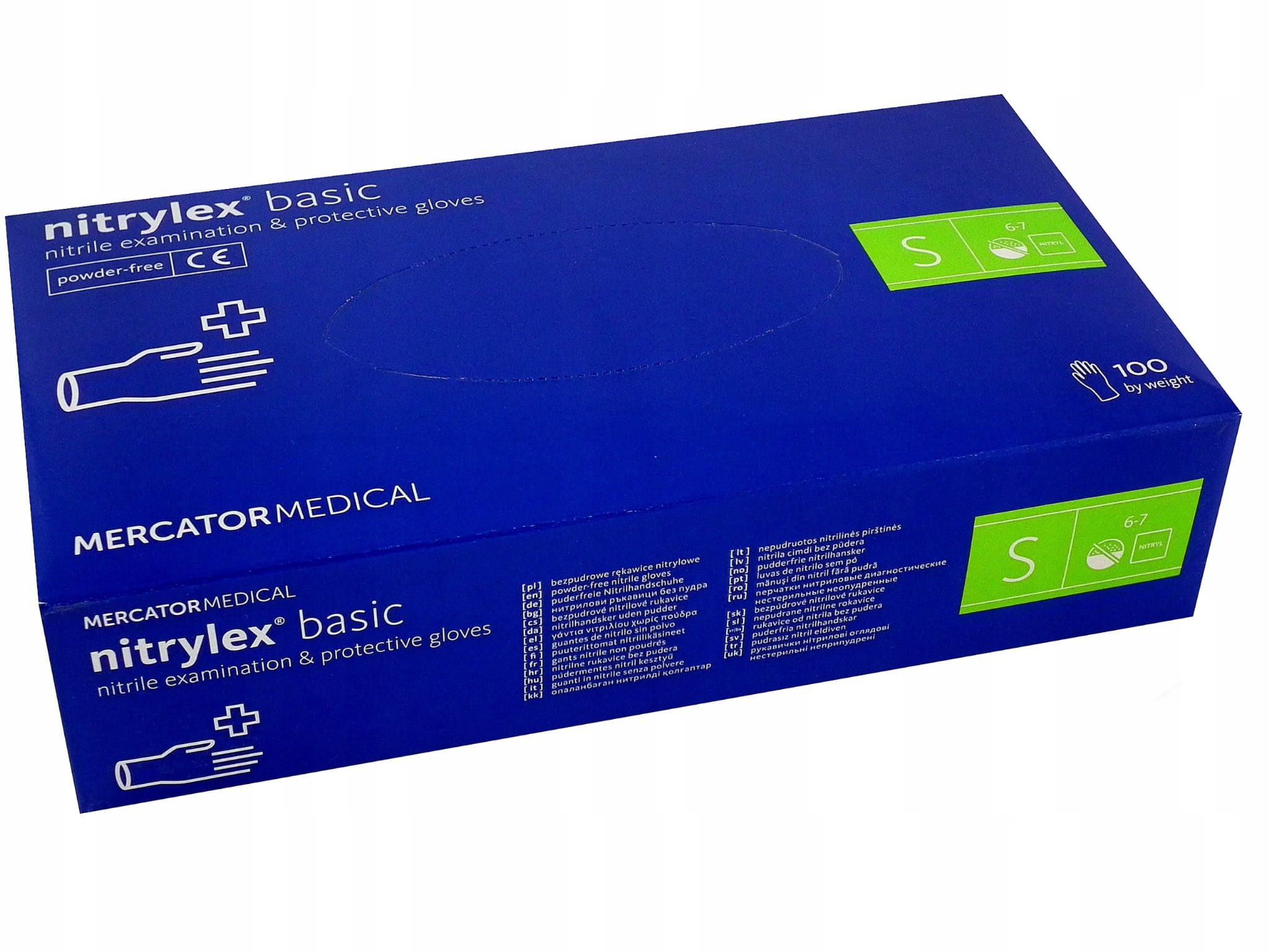 Rękawiczki nitrylowe bezpudrowe jednorazowe niebieskie rozmiar S BASIC opakowanie 100 szt. MERCATOR